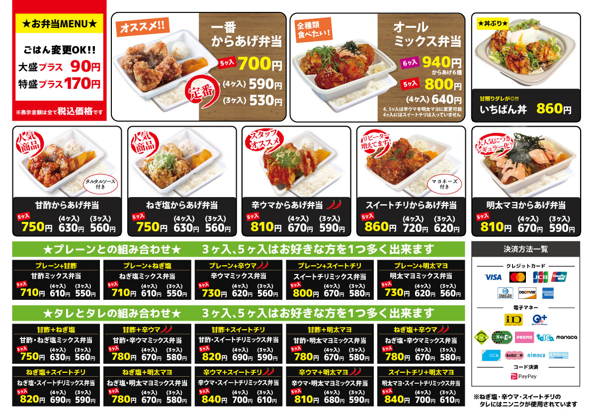 レジの上に、唐揚げ弁当の写真がズラリ。